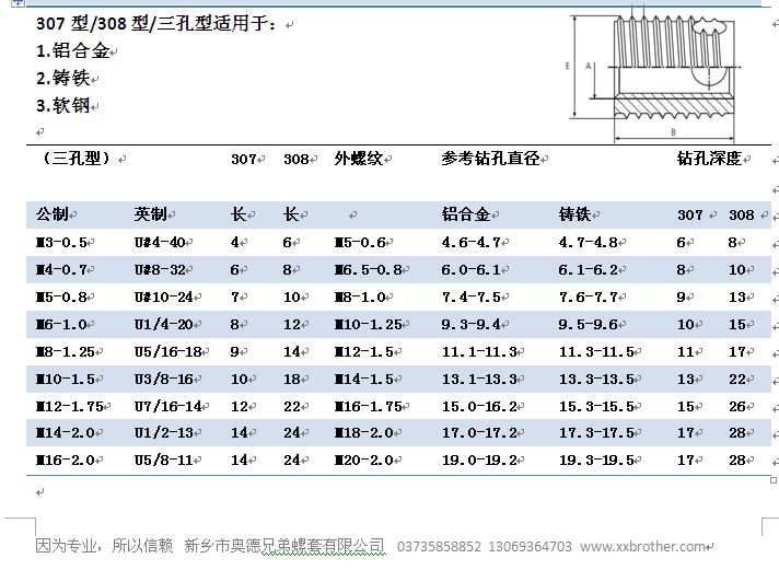 24h咨询热线13069364703 绵阳308型自攻丝套使用影响机器行业当中的作用:绵阳螺纹护套被认为一种紧固件产品,大概在几年前,当有人提到308型自攻绵阳丝套的时候会不清楚,然而,随着时间的推移,螺纹护套产品的选择不断增加,衬套的重要性,在行业当中的使用也随之的被各位熟悉。